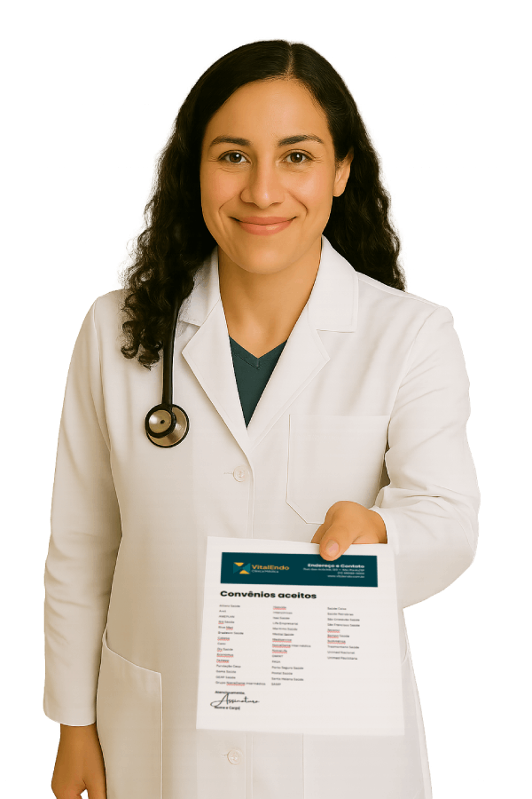 A VitalEndo está conectada com os principais planos de saúde. E se você precisar, ajudamos com reembolsos ou com encaminhamentos. Nosso foco é tornar seu cuidado mais simples.